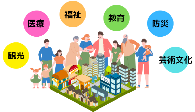 現在では、高齢者・子供・障がい者・異業種の人達とのコミュニケーション手段として、医療、福祉、教育、防災、芸術文化、観光など、様々な分野で取組が広がっています。